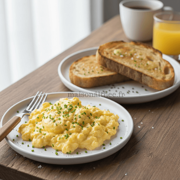 Œufs brouillés crémeux + tartines grillées