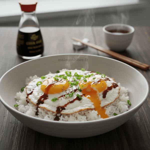 Riz micro-ondes aux oeufs et sauce soja